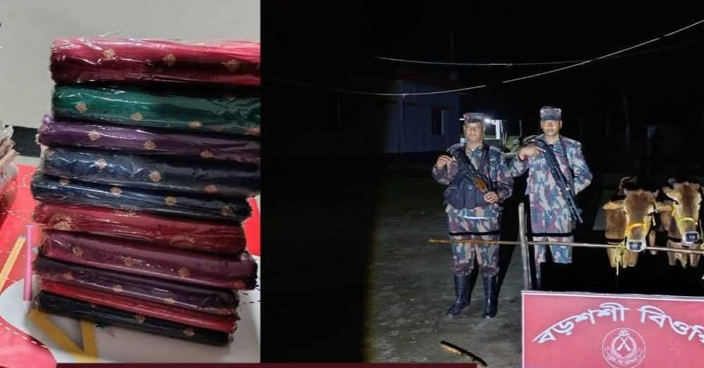 পঞ্চগড় সীমান্তে বিজিবির বিশেষ অভিযান ভারতীয় শাড়ি ও ২টি গরু জ/ব্দ