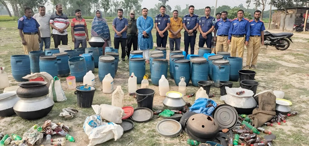 ধামইরহাটে মা/দক বি/রোধী ঝটিকা অভি/যানে ধান ক্ষেতে উদ্ধার হলো সাড়ে ৬ হাজার লিটার চো/লাইমদ