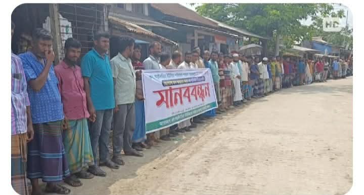 এসময় মানববন্ধনে বক্তব্য রাখেন, ইউপি সদস্য মো. রেদওয়ান সরদার, খলিলুর রহমান, পিযুষ কান্তি হাওলাদার, পুলুকেশ মজুমদার, ফয়সাল সিকদার প্রমুখ।
