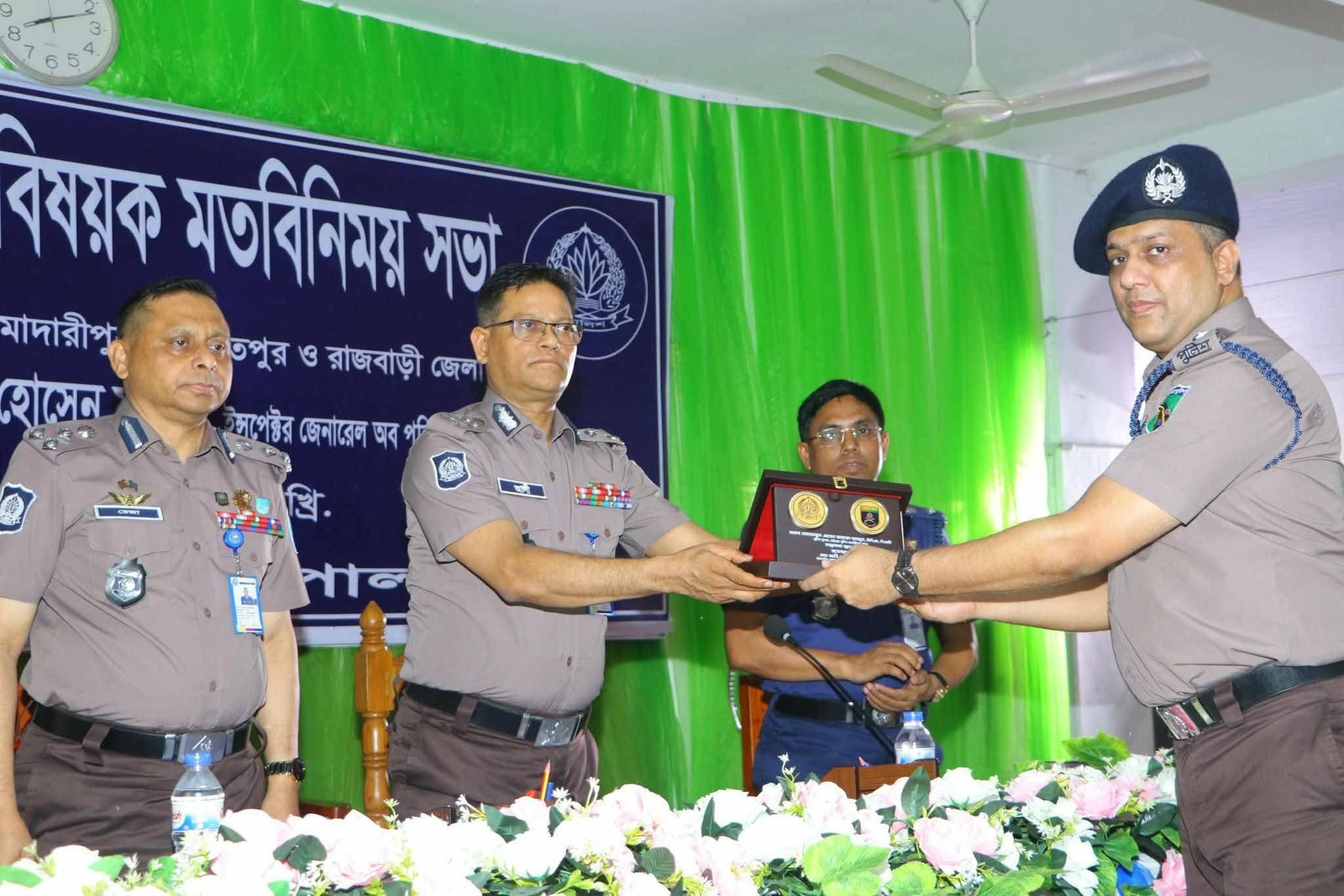 বিশেষ মতবিনিময় সভা শেষে আইজিপি মোঃ আলী হোসেন ফকিরের হাতে গোপালগঞ্জ জেলা পুলিশের পক্ষ থেকে শুভেচ্ছা ও সম্মাননা ক্রেস্ট তুলে দেন ঢাকা রেঞ্জের ডিআইজি রেজাউল করিম মল্লিক ও জেলা পুলিশ সুপার মোঃ হাবীবুল্লাহ।
