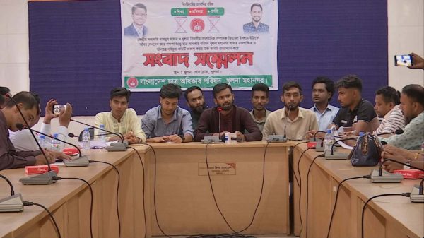 শেখ তৈয়ব, খুলনা। অদ্য ০৪-০৪-২০২৬ তারিখ শনিবার দুপুর ১১ টায় খুলনা প্রেসক্লাবে এক সংবাদ সম্মেলনে ছাত্র অধিকার পরিষদ খুলনা মহানগর এর সাবেক সিনিয়র যুগ্ন সাধারণ সম্পাদক এবং সভাপতি পদপ্রার্থী জুবায়েত read more