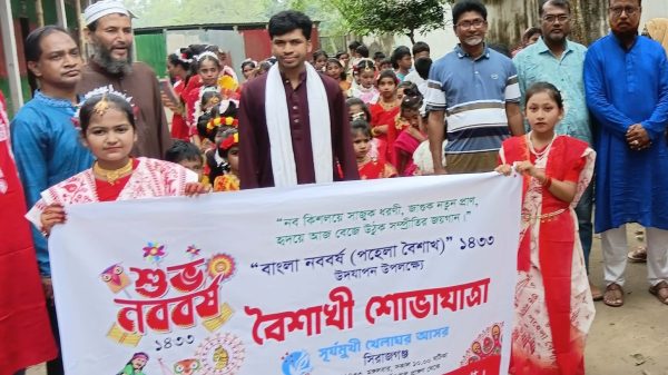 জি.এম স্বপ্না,সিরাজগঞ্জ : “নব কিশলয়ে জাগুক ধরণী,সাজুক নতুন প্রাণ,হৃদয়ে আজ জেগে উঠুক সম্প্রীতির জয়গান”—এই প্রতিপাদ্যকে ধারণ করে বাংলা নববর্ষ-১৪৩৩ উদযাপনে রঙে-উৎসবে মুখর হয়ে ওঠে সিরাজগঞ্জ।প্রাচীনতম শিশু সংগঠন “খেলাঘর” সিরাজগঞ্জ জেলা