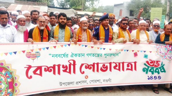 নওগাঁ পোরশা প্রতিনিধিঃ মোঃ তোফাজ্জল হোসেন বাংলা নববর্ষ ১৪৩৩ উদযাপন উপলক্ষে নওগাঁর পোরশা উপজেলায় বর্ণাঢ্য আয়োজনের মধ্য দিয়ে পহেলা বৈশাখ উদযাপন করা হয়েছে। এ উপলক্ষে আয়োজিত প্রধান র্যালিতে নেতৃত্ব দেন
