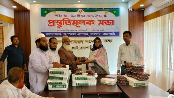 চারঘাট (রাজশাহী) প্রতিনিধিঃ রাজশাহীর চারঘাট উপজেলায় পবিত্র রমজান মাস উপলক্ষে সৌদি আরব থেকে প্রাপ্ত খেজুর বিতরণ করা হয়েছে। উপজেলা প্রশাসনের আয়োজনে বুধবার (১১ মার্চ) বিকেলে উপজেলা সম্মেলন কক্ষে উপজেলার ৬
